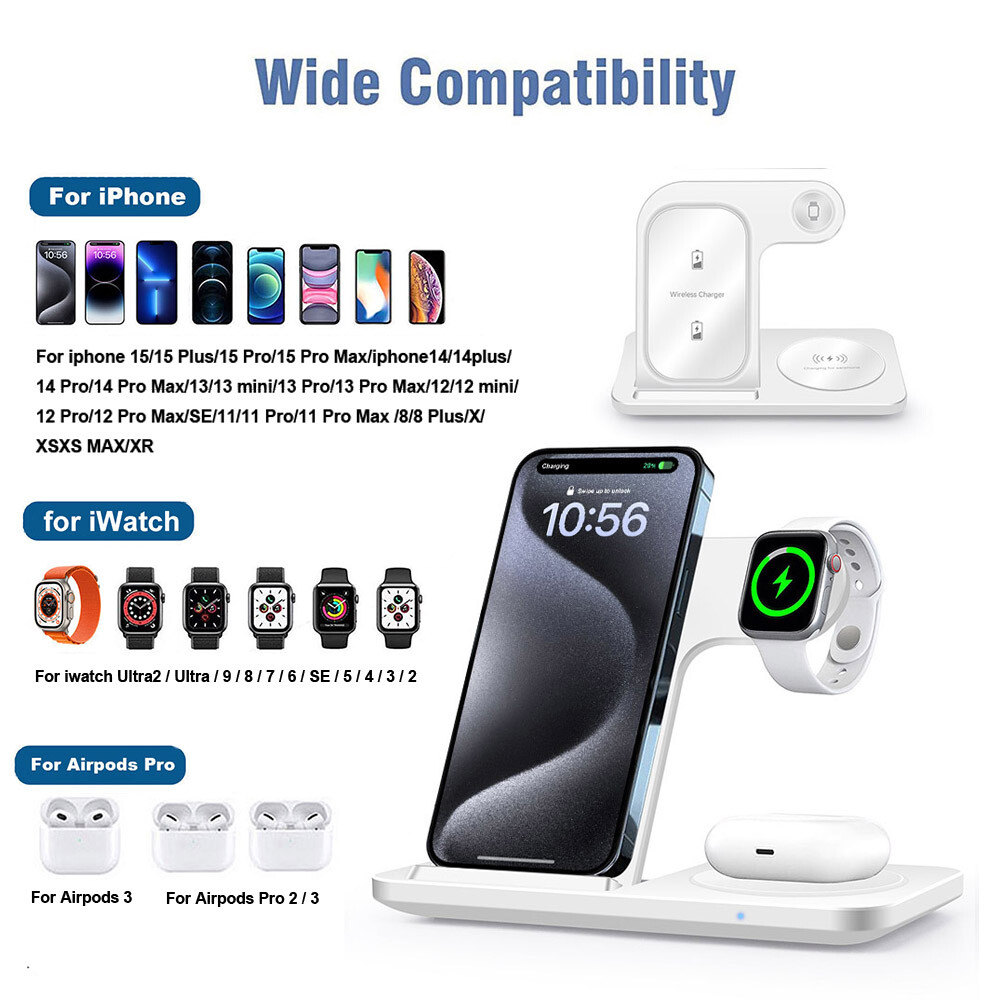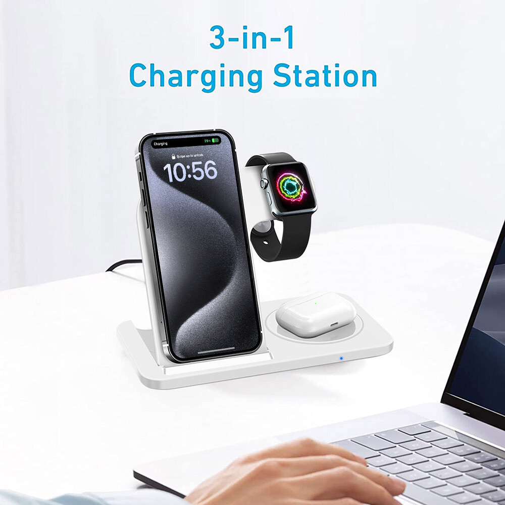 3in1 Kabelloses Ladegerät Induktion Ladestation Für Apple Watch 9 8 iPhone 15 14