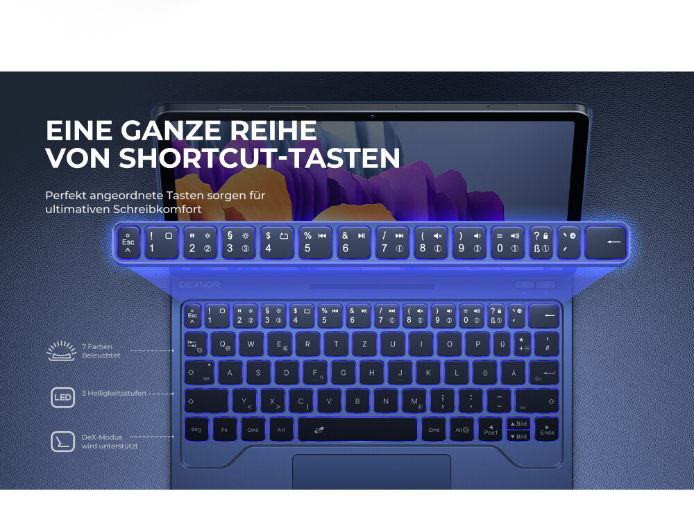 【TABLETT-/DEX-MODUS UMSCHALTBAR】 Unsere Scherentasten funktionieren wie Magie - drücken Sie die Hälfte für leises, unterbrechungsfreies Tippen. In Kombination mit dem DeX-Modus verwandelt sich Ihr Tablet mühelos in einen Laptop.