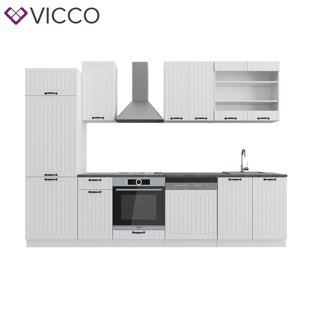 Küche Fame-Line 240 cm Küchenzeile Landhaus Küchenblock Einbau Weiß Vicco