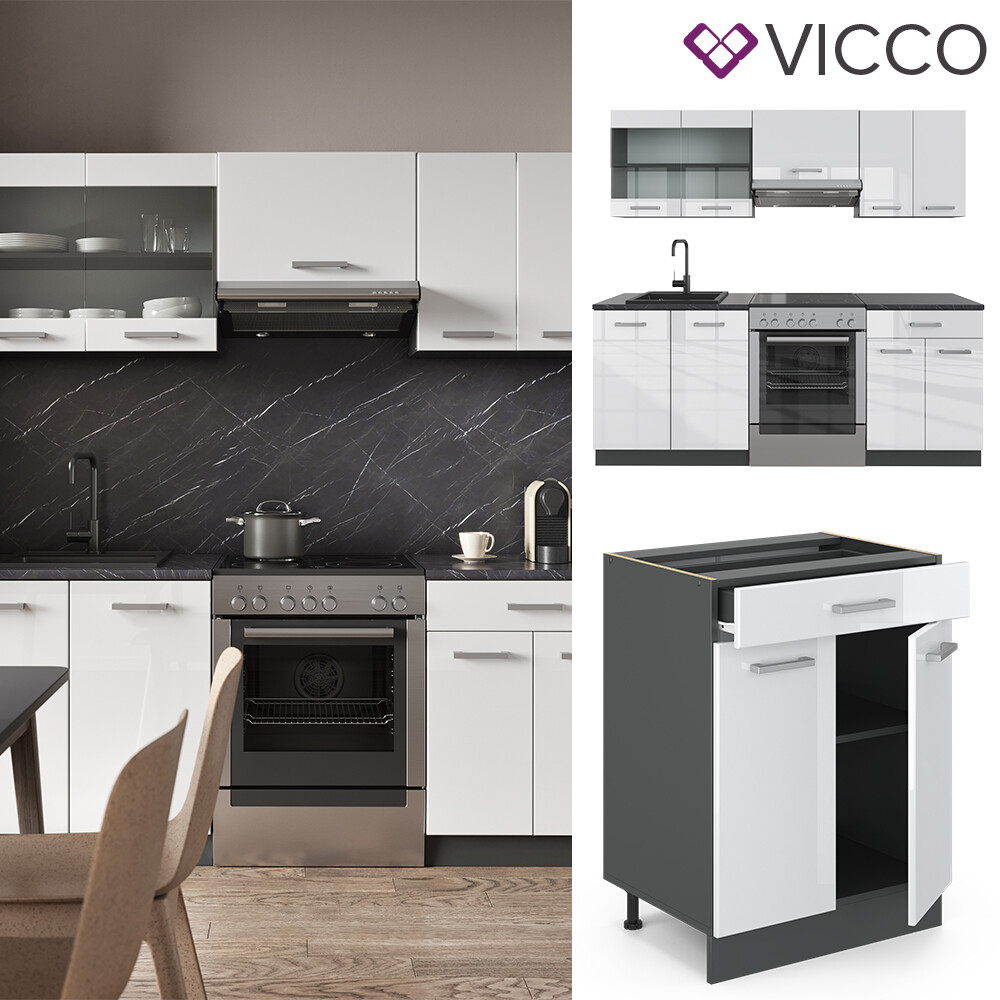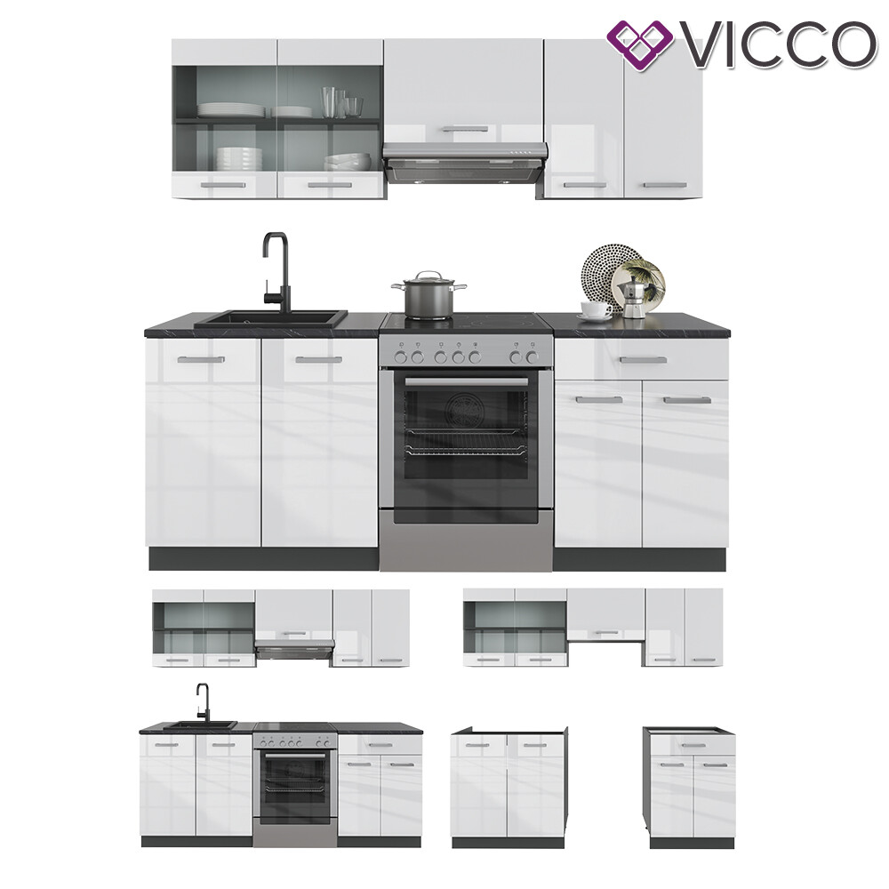 Küche Küchenzeile Küchenblock Einbauküche R-Line 200 cm Bordeaux Hochglanz Vicco