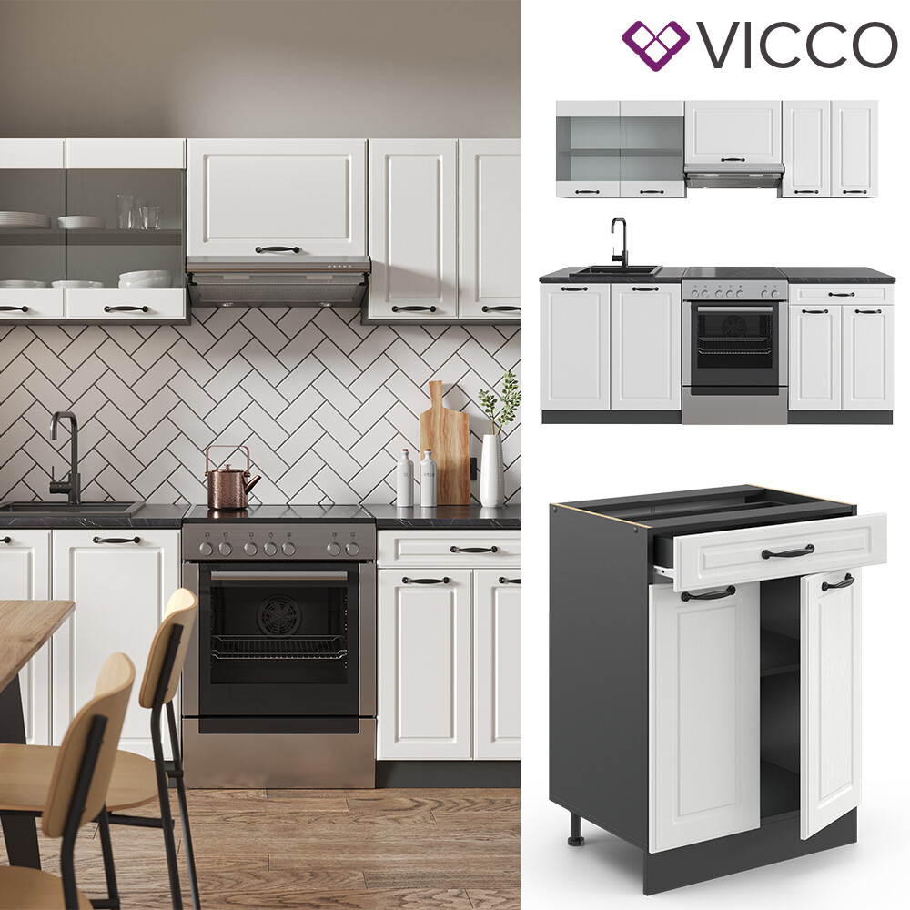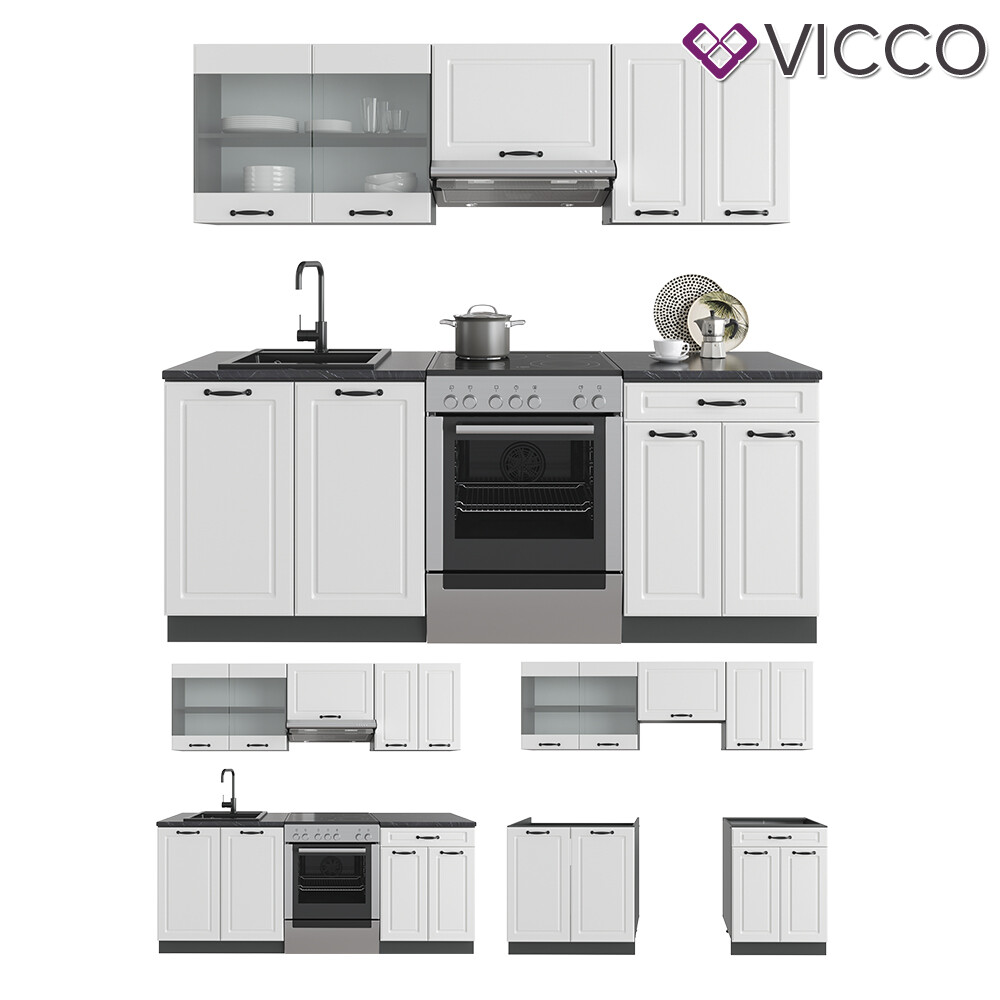 Küchenzeile Küchenblock Einbauküche R-Line 200 cm Landhaus Weiß Anthrazit Vicco