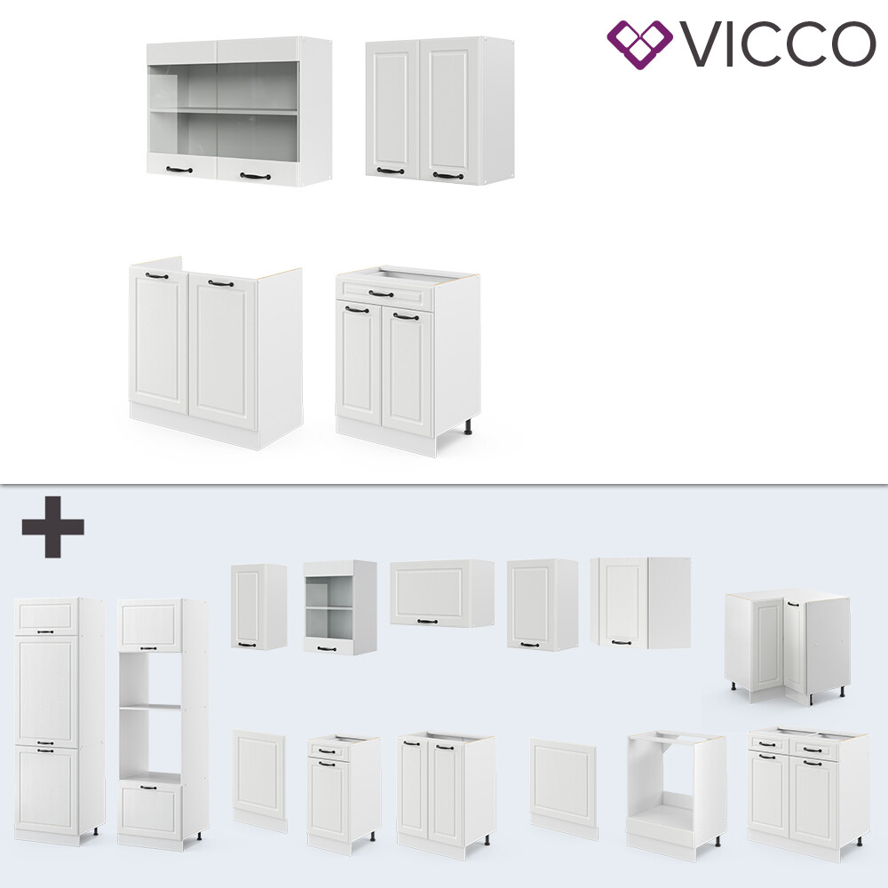 Küchenzeile Küchenblock Einbauküche R-Line Single Landhaus Anthrazit Weiß Vicco
