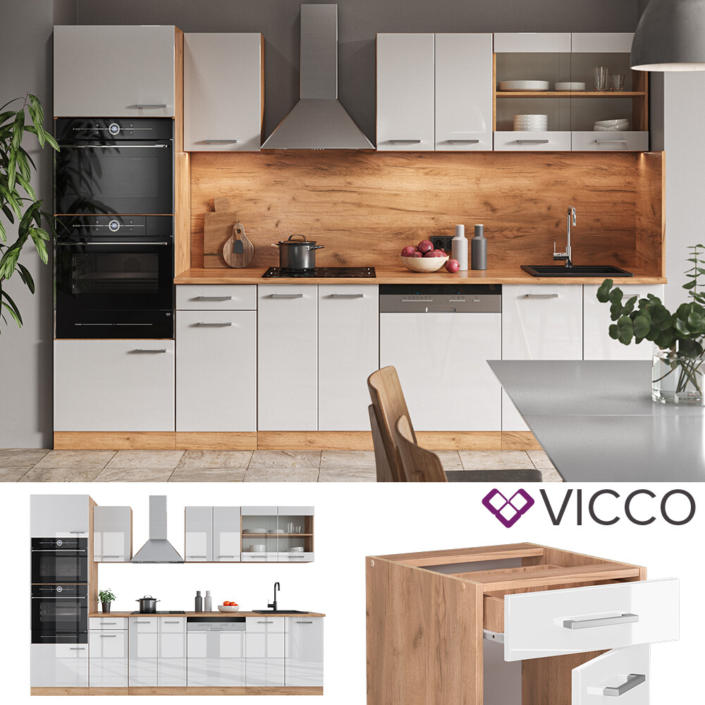Küchenzeile Küchenblock Einbauküche R-Line 300cm Mikrowellenumbauschrank Vicco