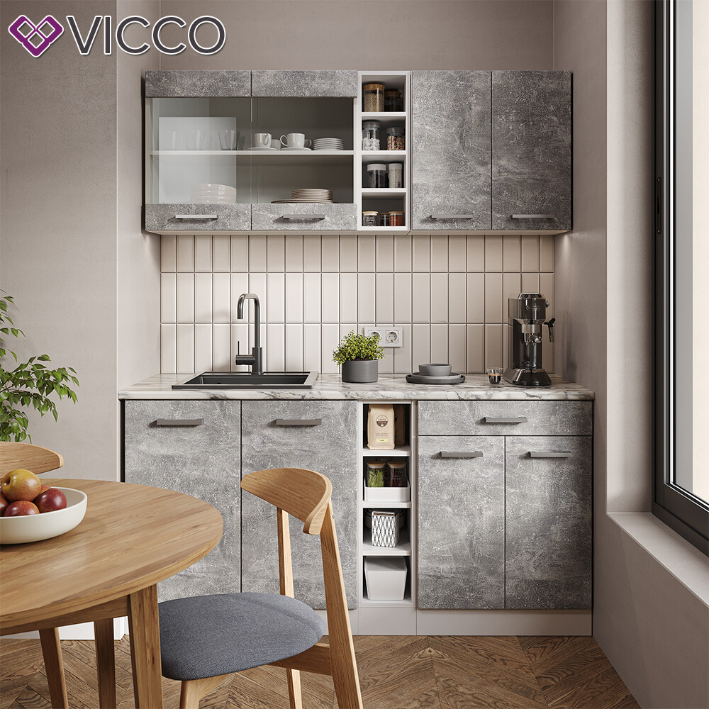 Küchenzeile Küchenblock Einbauküche R-Line Single Front Anthrazit HGL Vicco