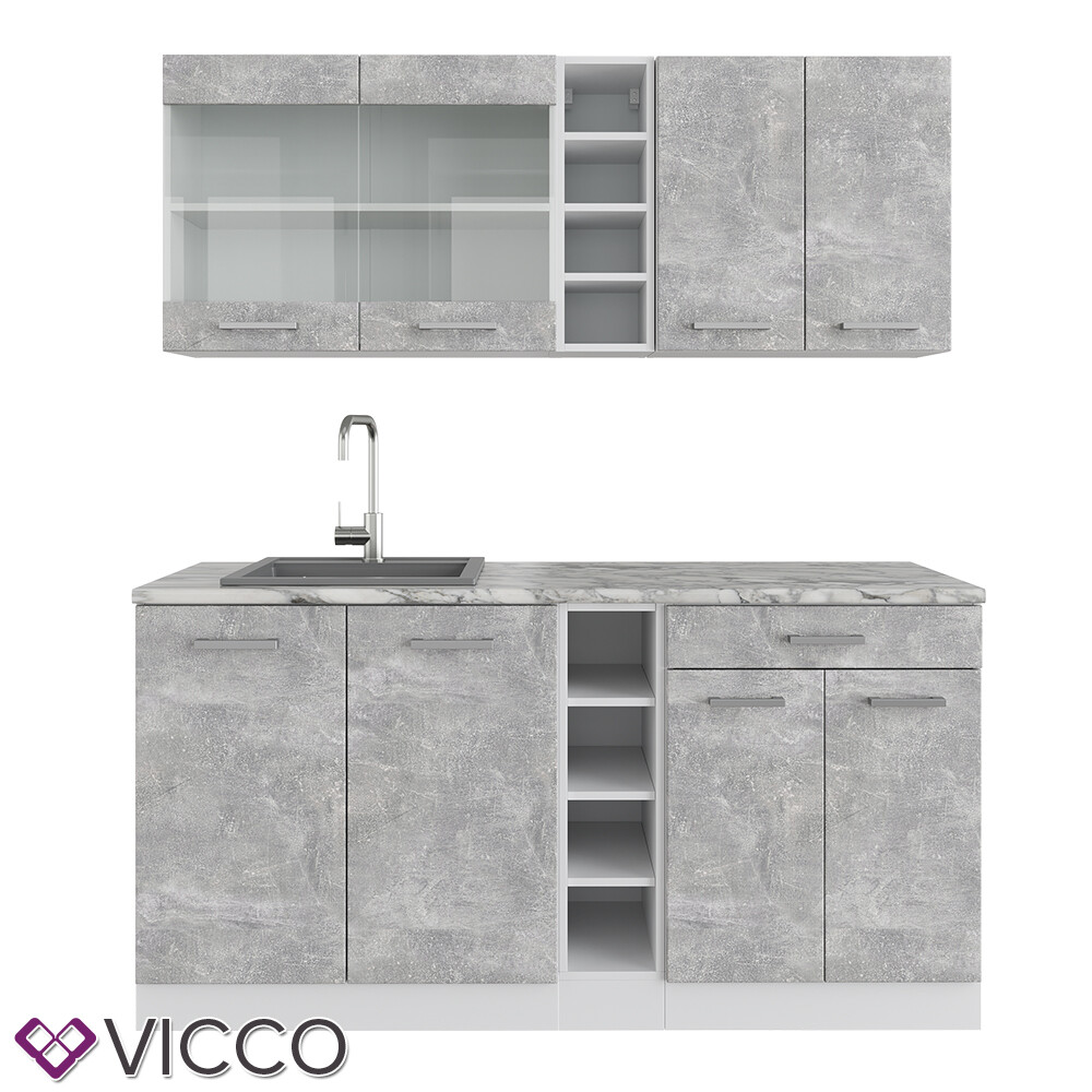 Küchenzeile Küchenblock Einbauküche R-Line Single Landhaus Weiß 160 cm Vicco