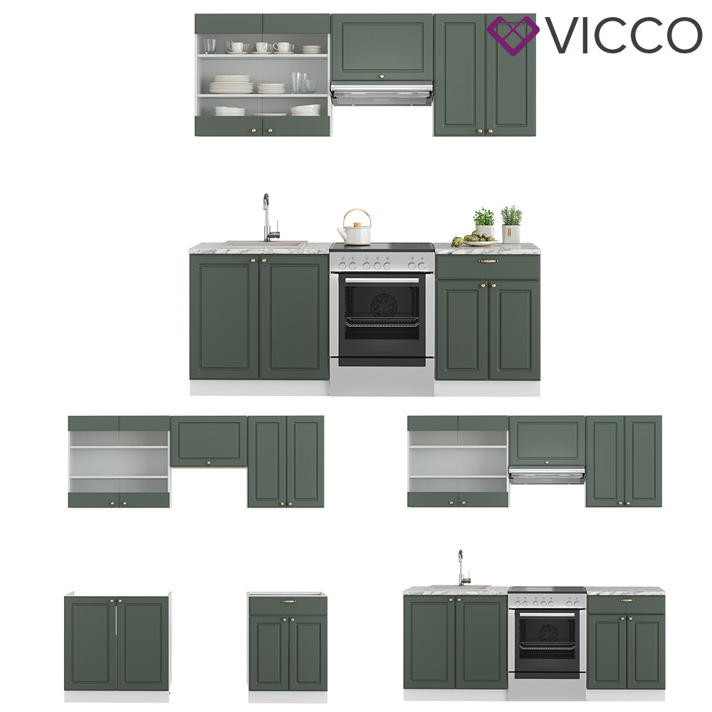 Küchenzeile Küchenblock Einbauküche Fame-Line Landhaus Weiß Anthrazit 200 Vicco