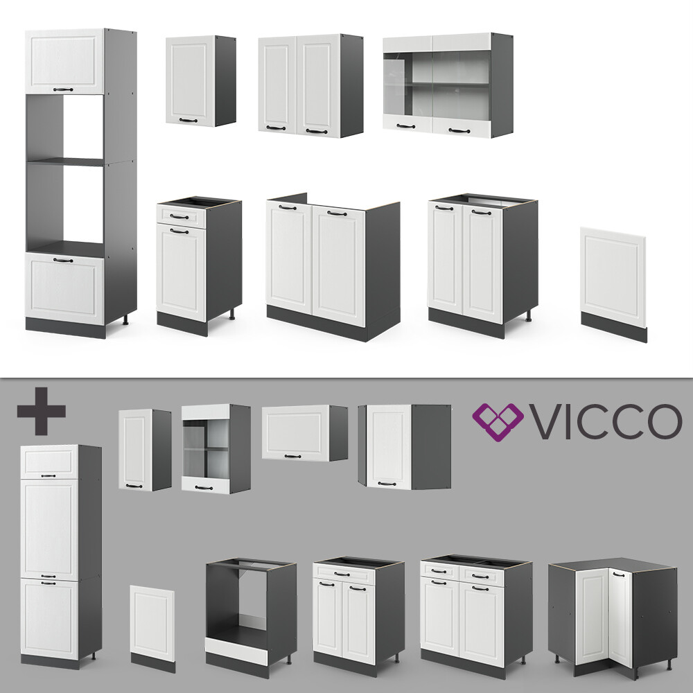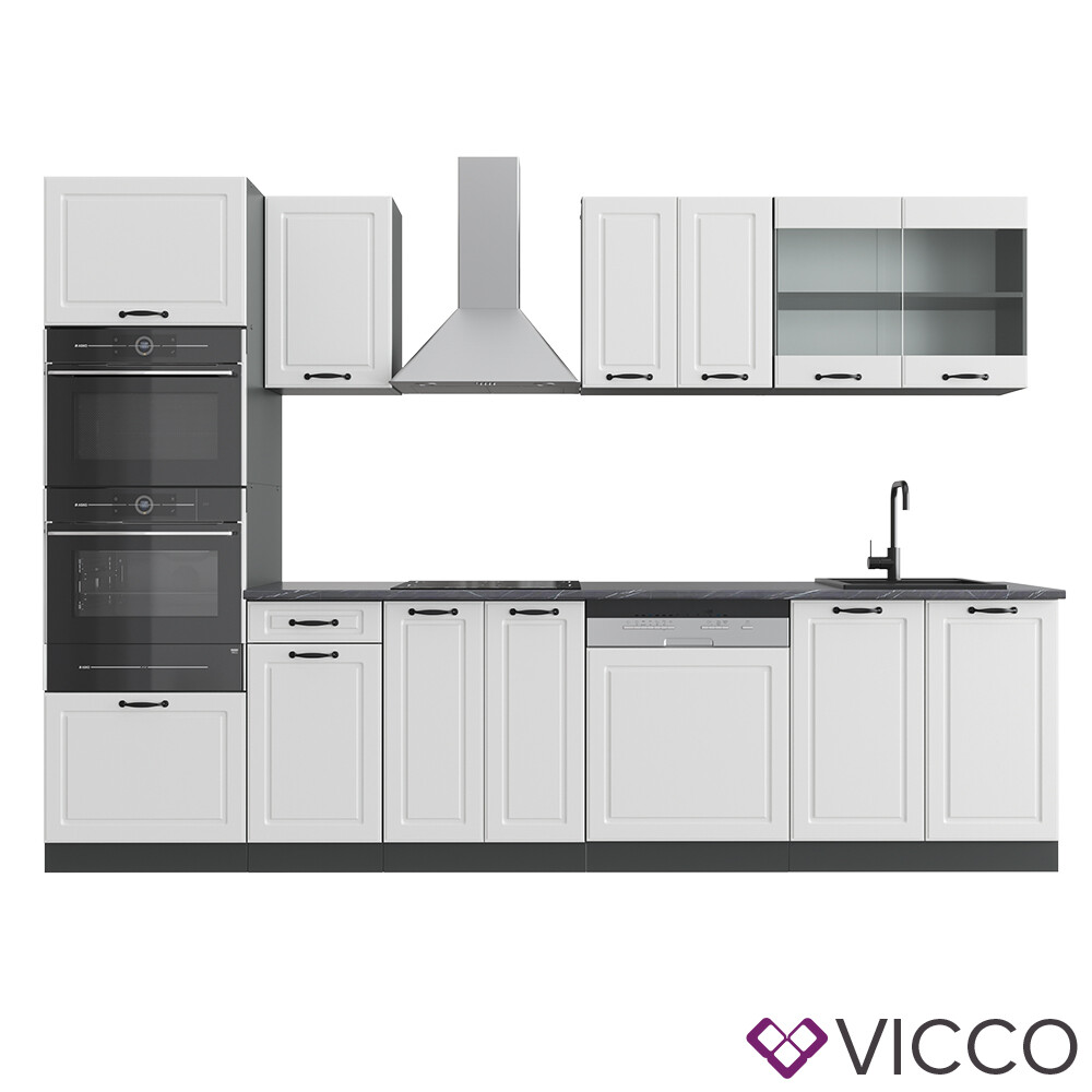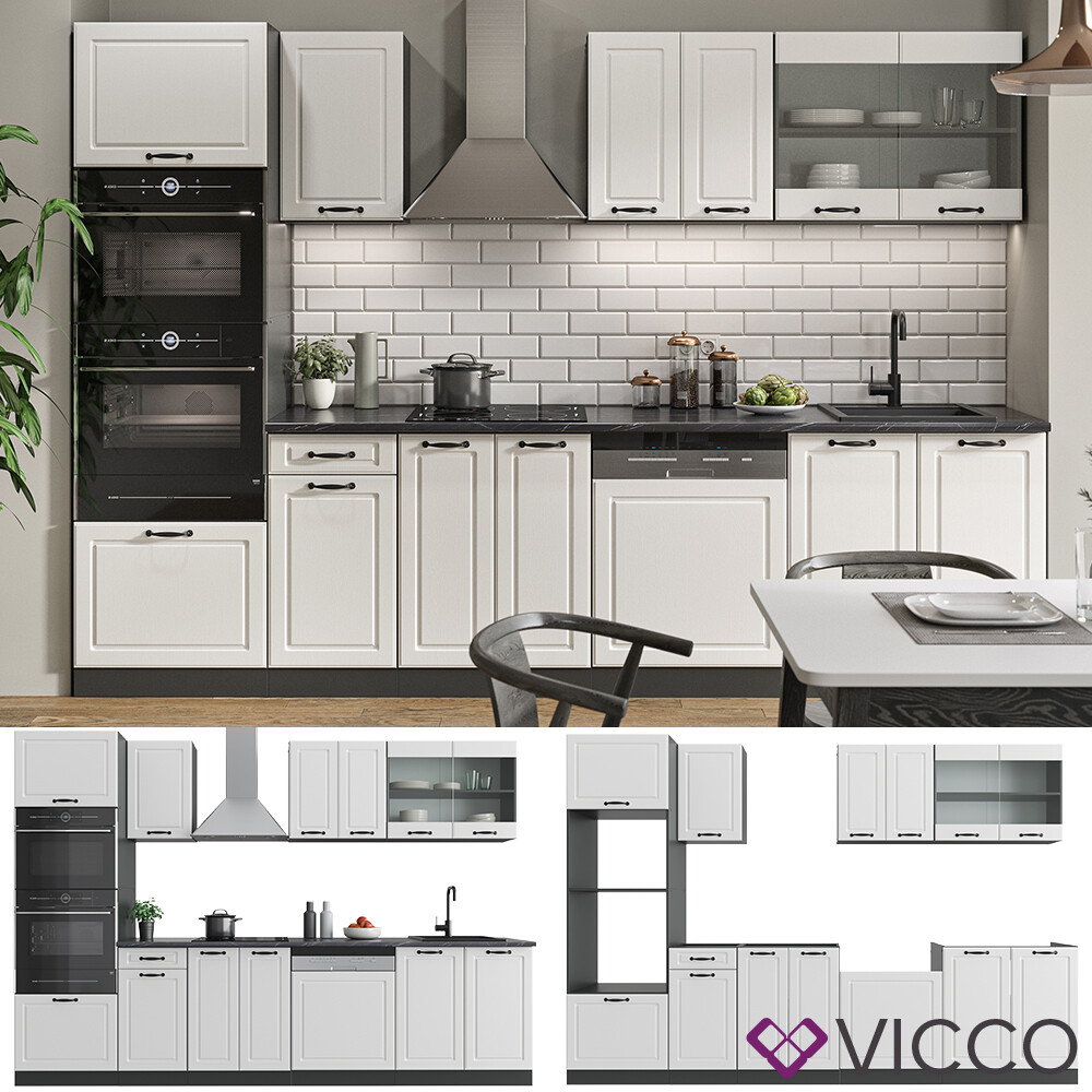 Küchenzeile Küchenblock Einbauküche R-Line 300 cm Landhaus Anthrazit MUS Vicco